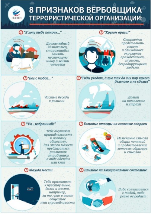 7) распространение средствами массовой информации идей и взглядов, ведущих к росту насилия, неравенства и нетерпимости, внушение населению всесильности и вседозволенности террористов и др.
